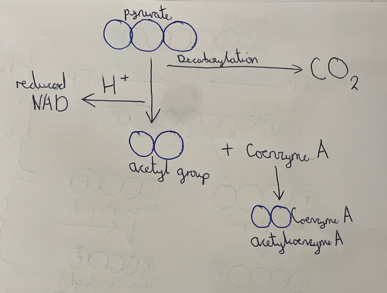 4. This leaves a two carbon acetyl group which binds to coenzyme A to form acetylcoenzyme A