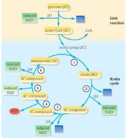 • Enzymes that catalyse the stages of the reactions • Molecules of the coenzymes NAD and FAD • Oxaloacetate - 4-carbon compound that accepts the acetyl group from the link reaction • Mitochondrial DNA • Mitochondrial ribosomes