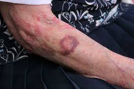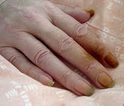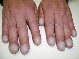 Skin changes: bruising and thinning of the skin can be associated with long-term steroid use (e.g. asthma, COPD, interstitial lung disease).