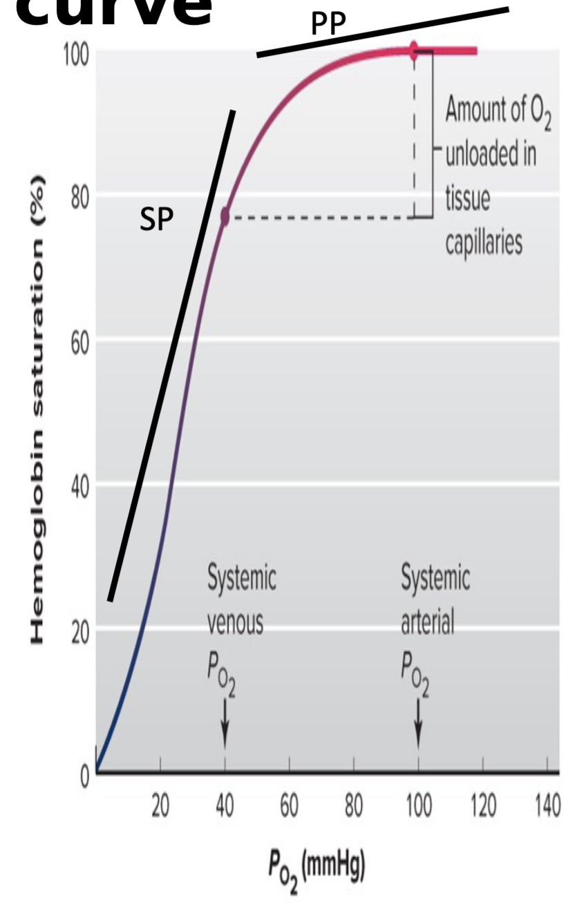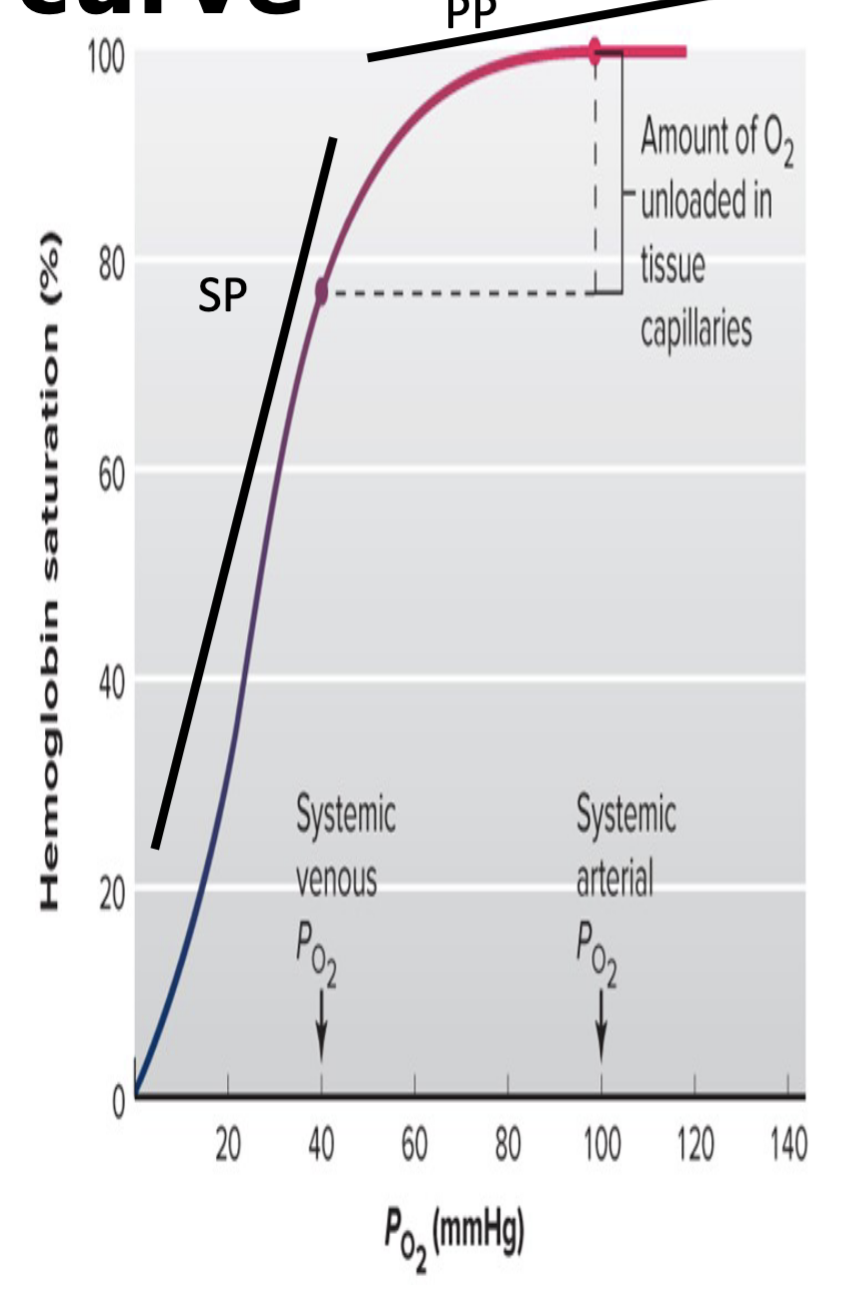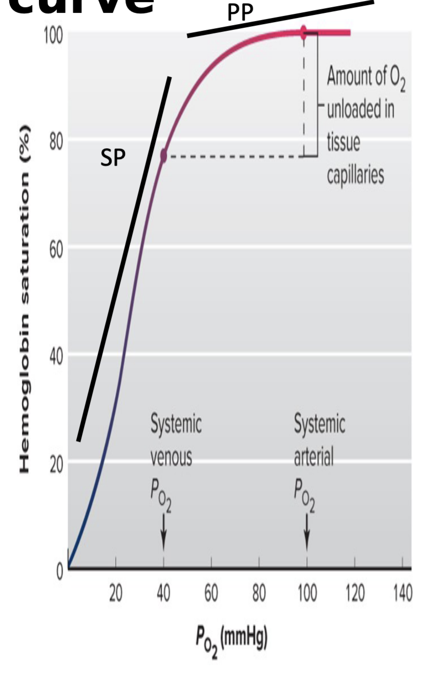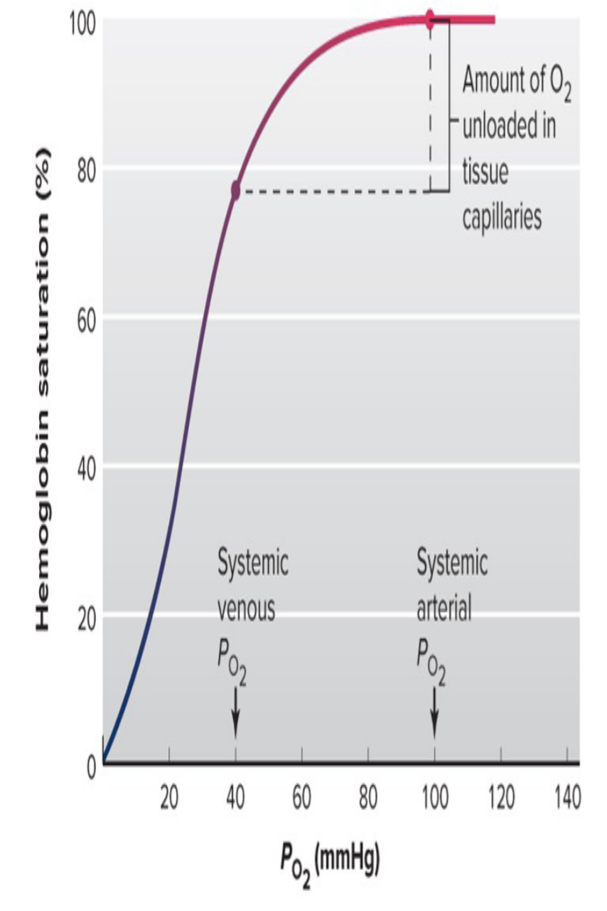 - 100 mmHg – ~100% saturation.