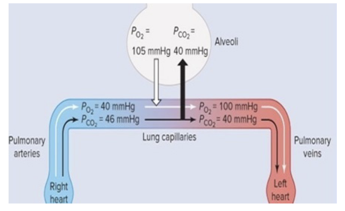 - PO2 100 mmHg to 80 mmHg;