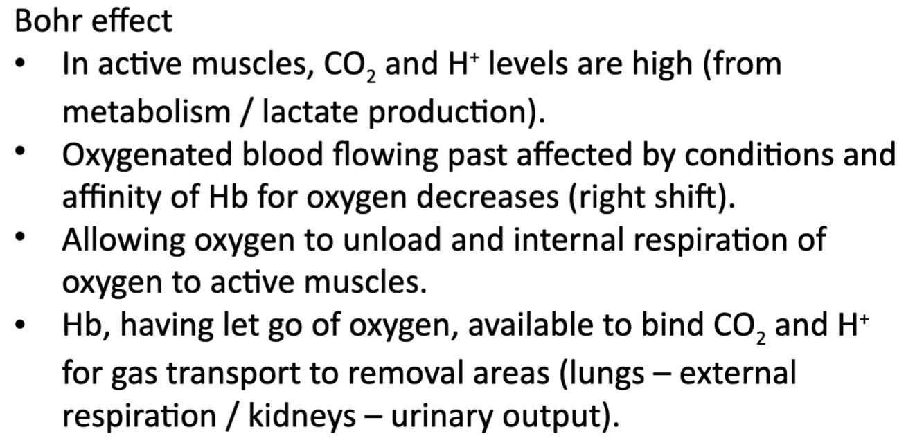 Reduces O2 binding Hb in external respiration (limits oxygen being transported and delivered to tissues).