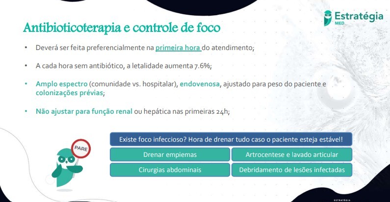 administração de antimicrobianos imediatamente, idealmente dentro de 1 hora após o reconhecimento.