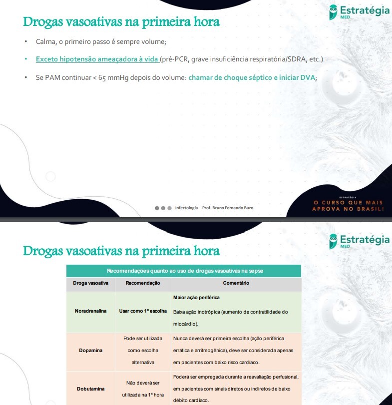 Para adultos com possível choque séptico ou alta probabilidade de sepse, recomendamos a