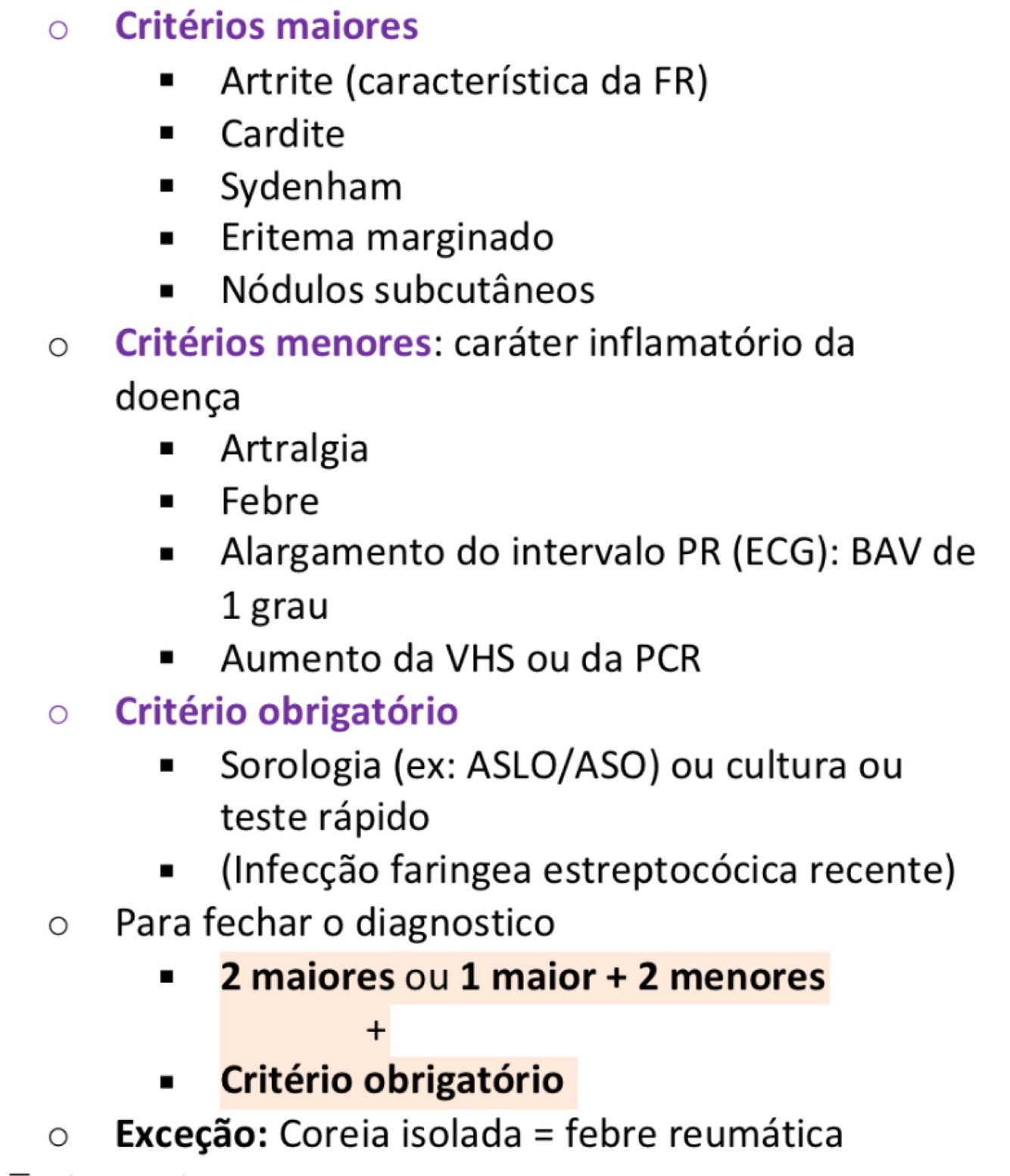 Como é feito o diagnóstico de febre reumática de acordo com os Critérios de Jonas: