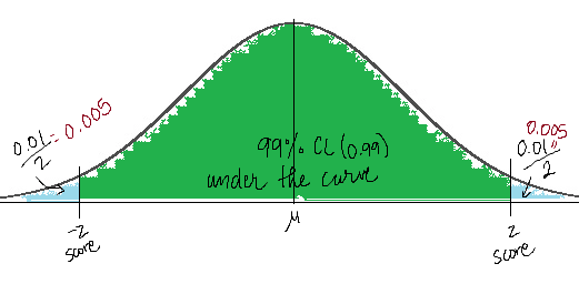 Note: on most Z tables, there is no value for 0.995! The values closest are 0.9949 and 0.9951. The Z values for these is 2.57 and 2.58 respectively.