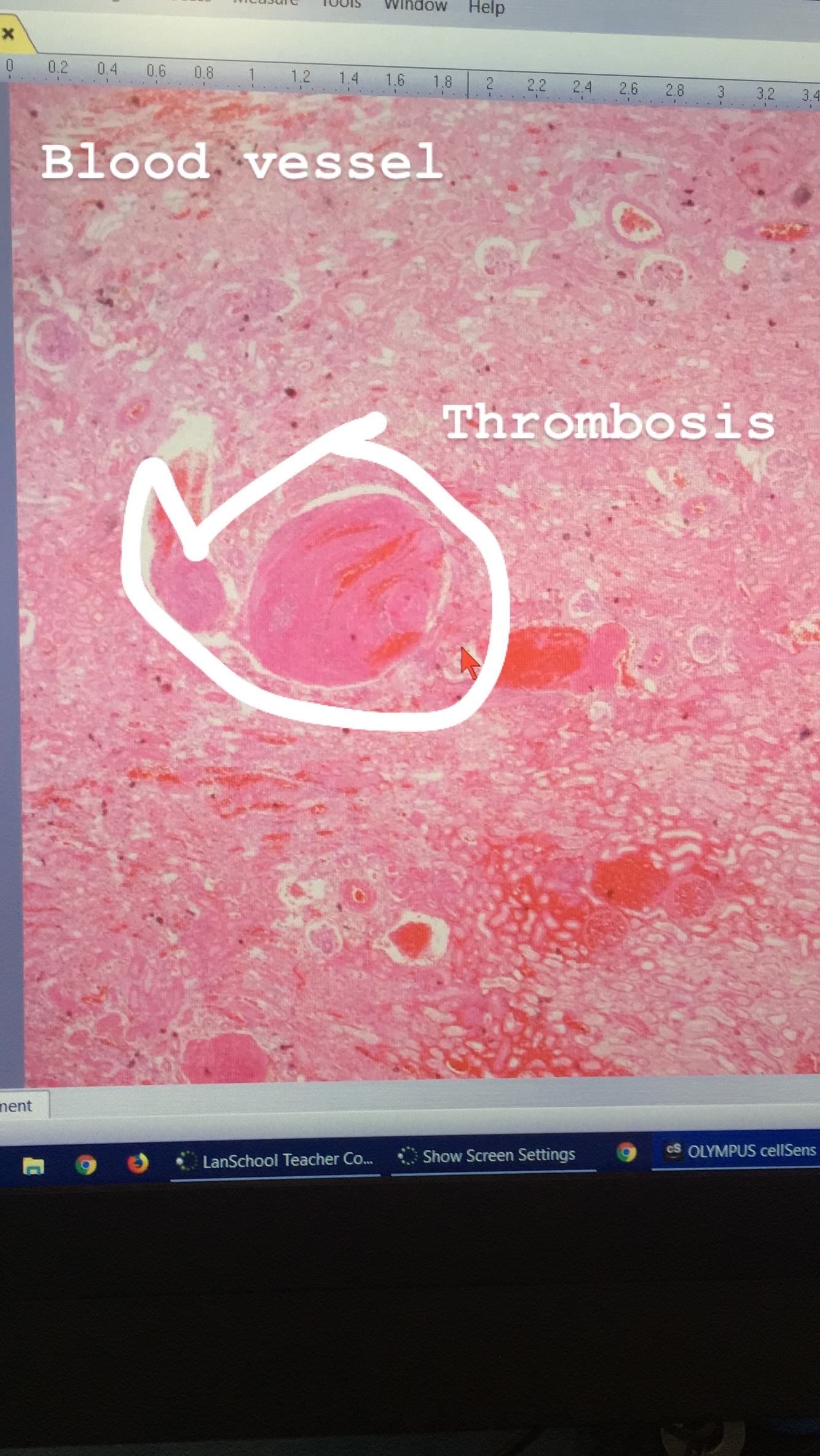 Thrombosis- is a clot which can lead to coagulative necrosis because it blocks off the nutrients to the vessel