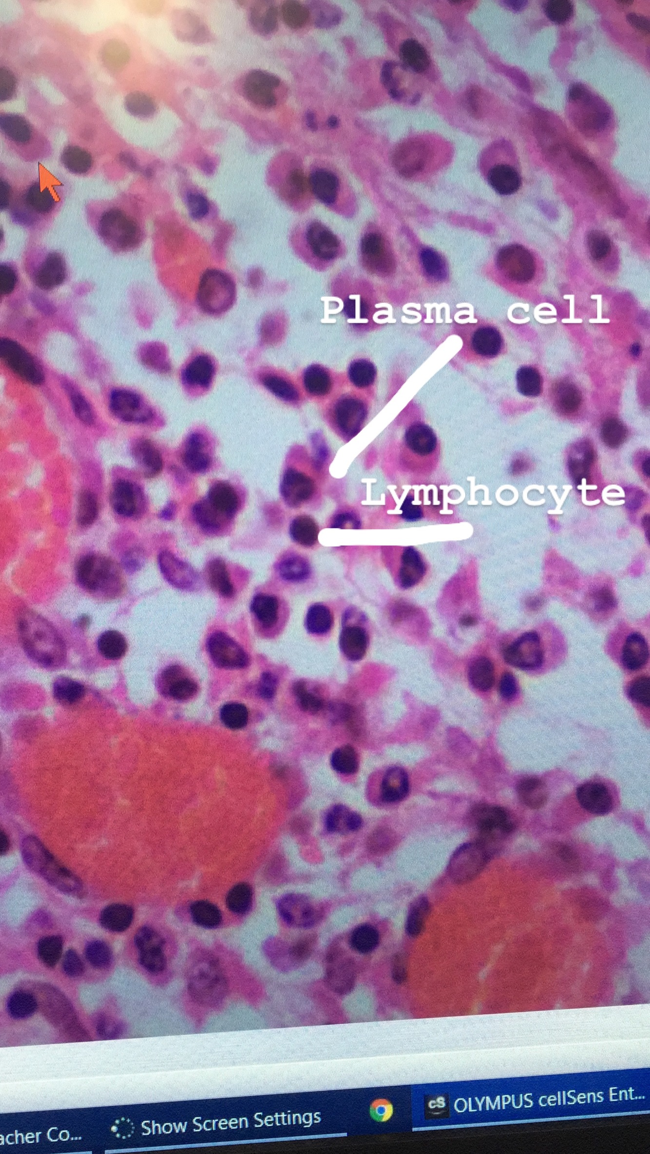 there will be fibrosis, lymphocytes and plasma cells and there is no neutrophils or macrophages