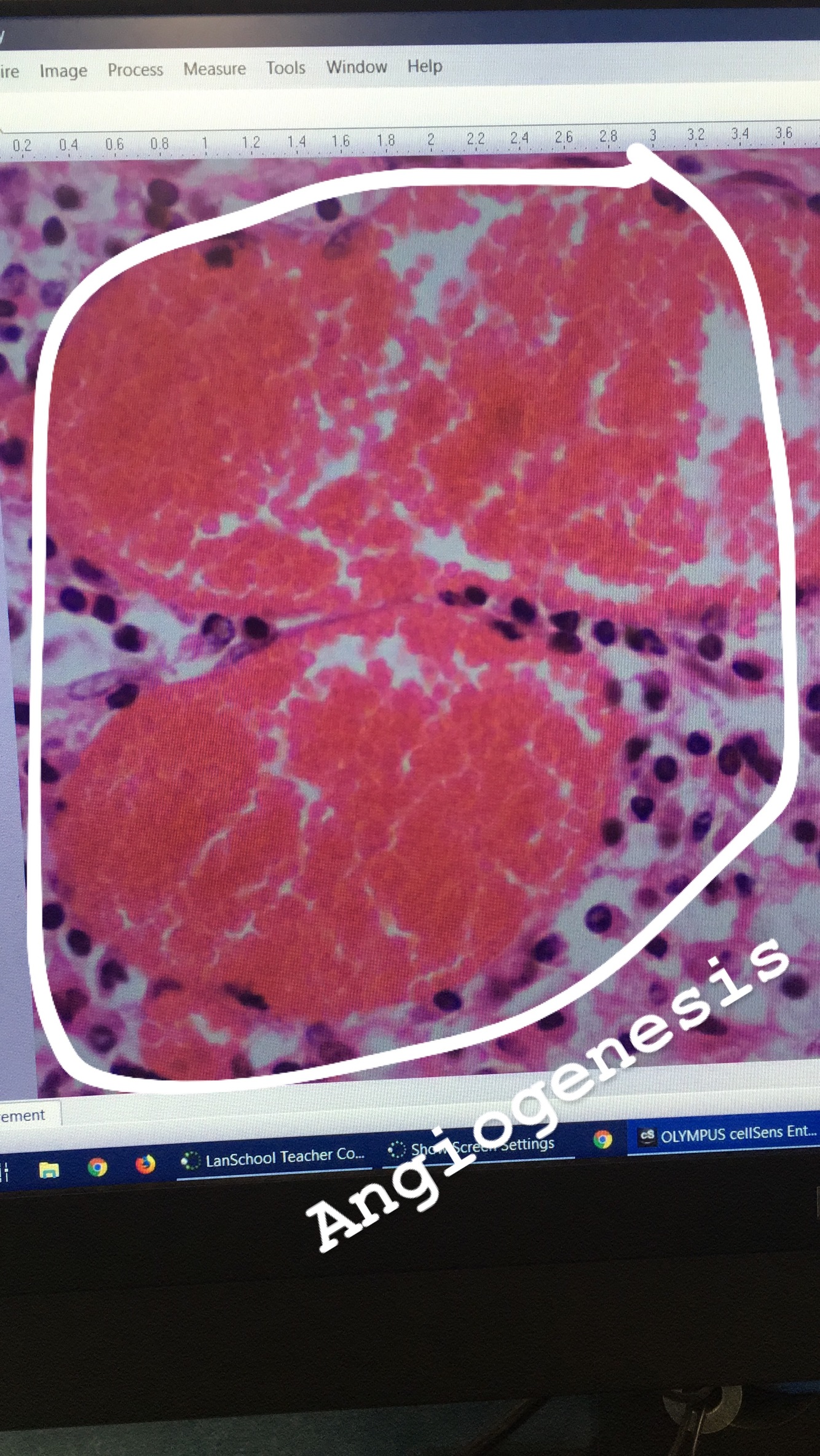 macrophages will come in and eat up all the RBC and this will cause hemosiderin which is the brown and gold pigment