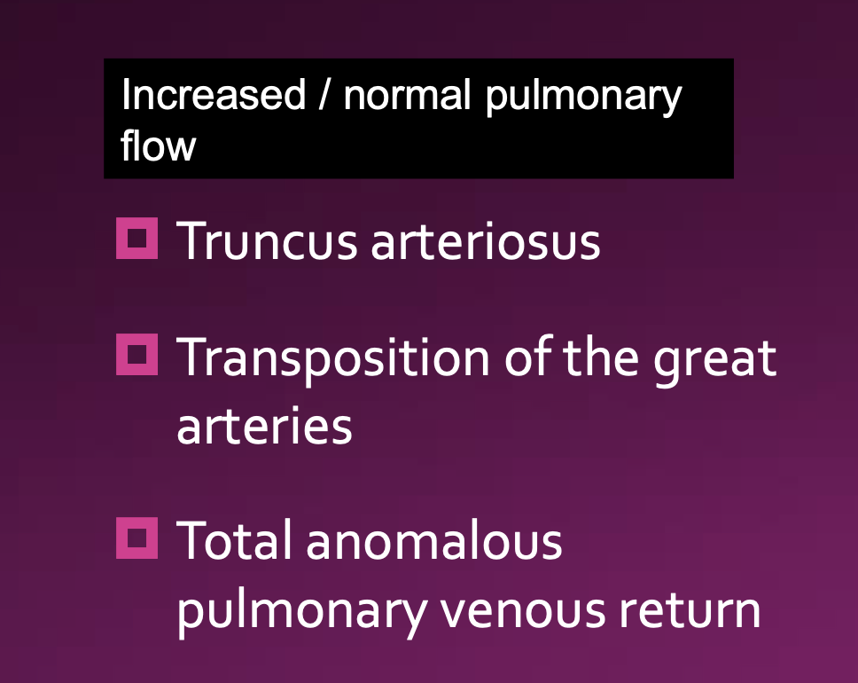 what are cyanotic heart diseases that causes increased (or normal if small) pulmonary flow?