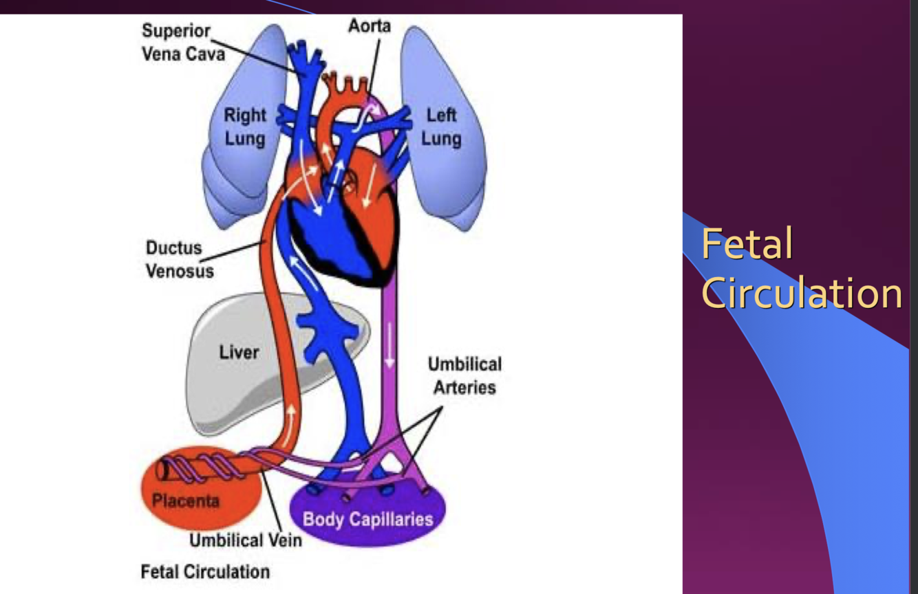 Blood returns to the body by the umbilical venous system from the placenta and mixes with systemic venous blood