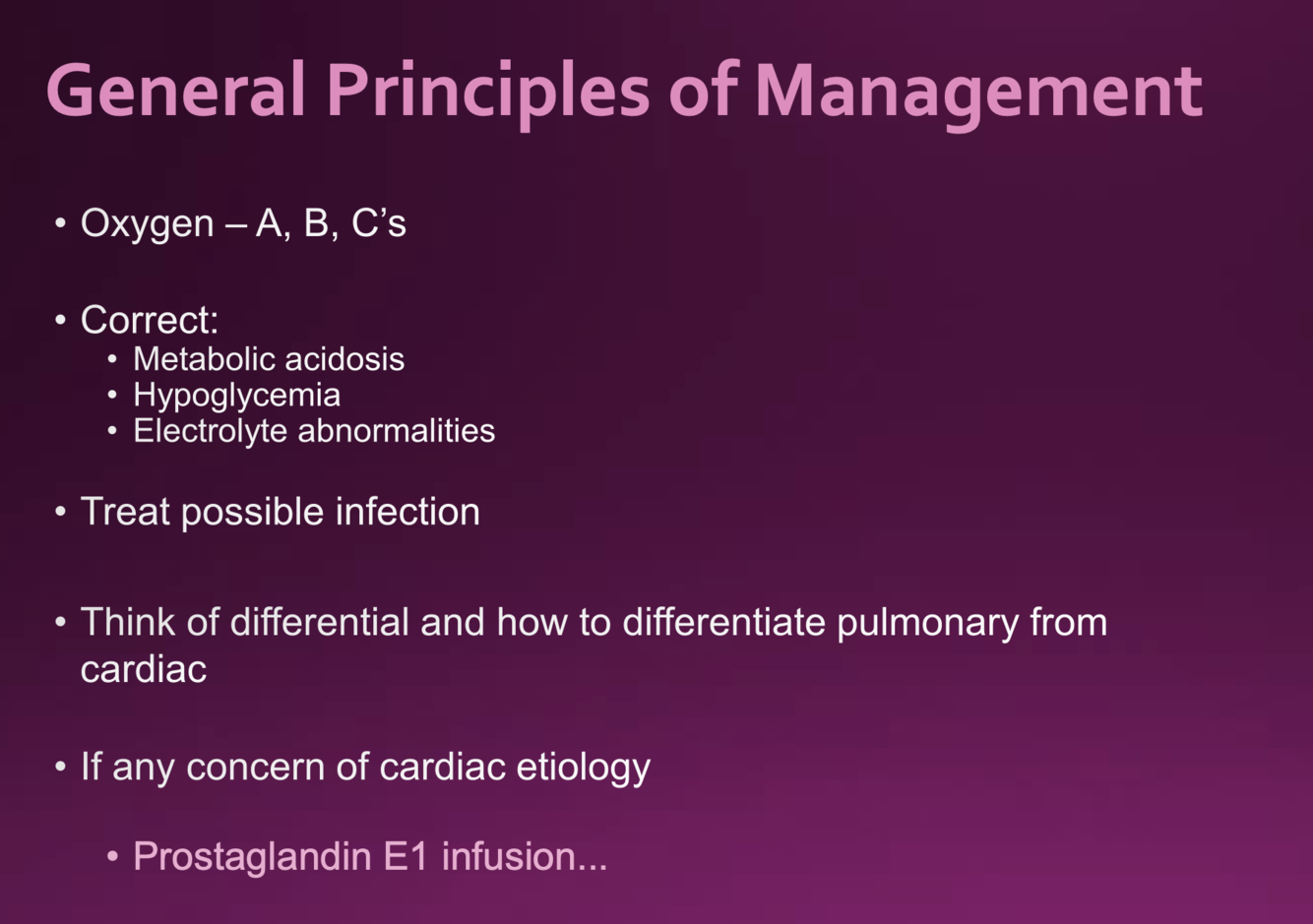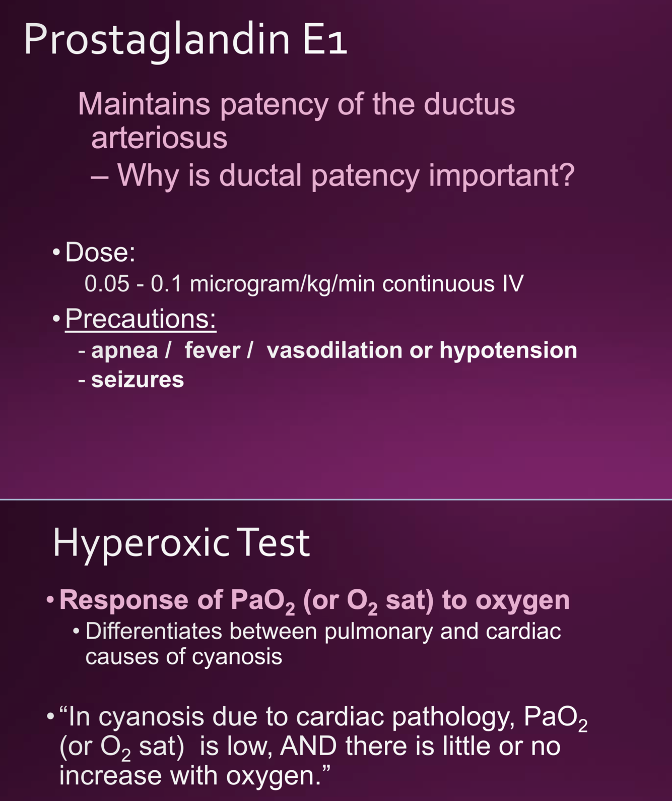 note: room air oxygen saturation should be monitored in a cyanotic baby
