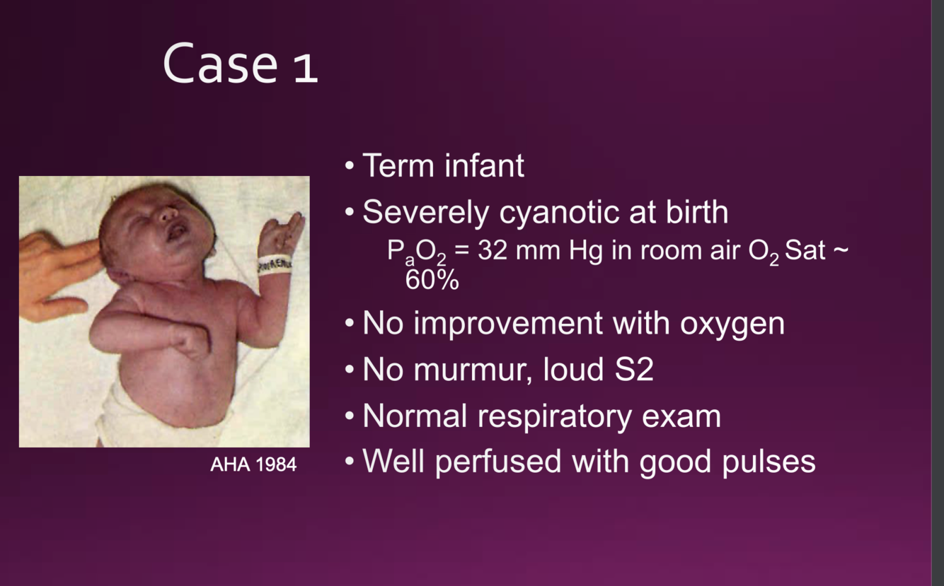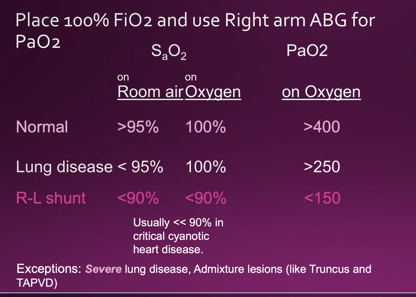 if baby is less than 90% on oxygen, its likely to be R-L cyanotic heart shunt disease