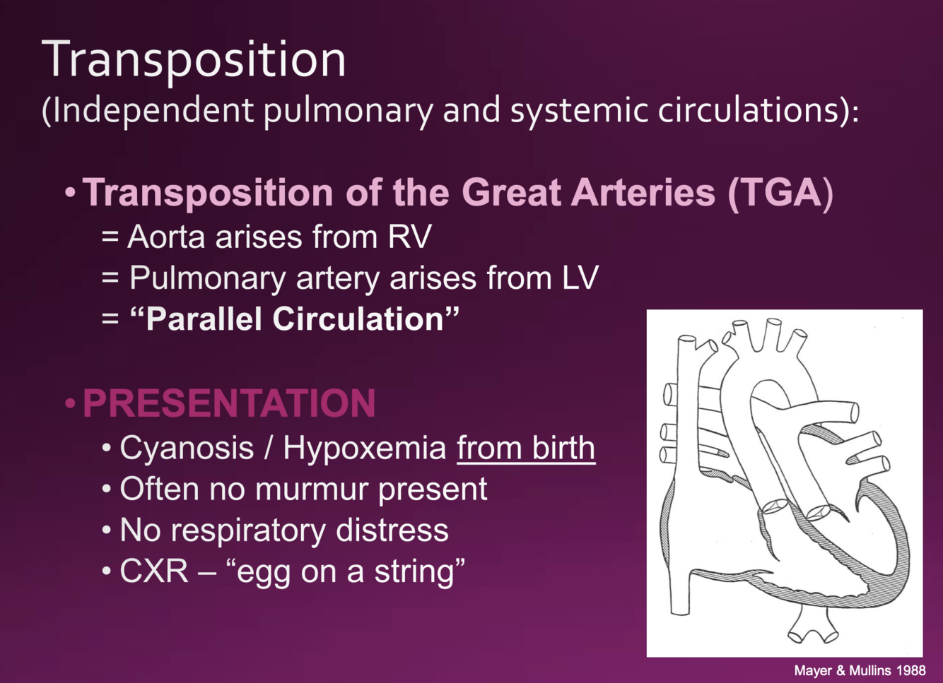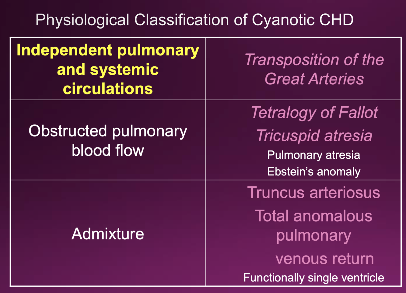 Transposition of the great arteries Cyanotic CHD is due to independent pulmonary and systemic circulations.