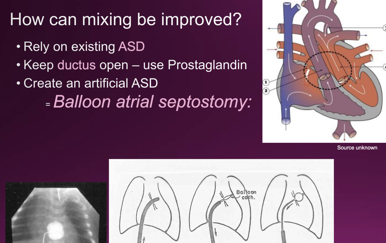 TGA is due to complete indepedndence of the pulmonary and systemic circulations. What is the management and how can mixing be rimproved?