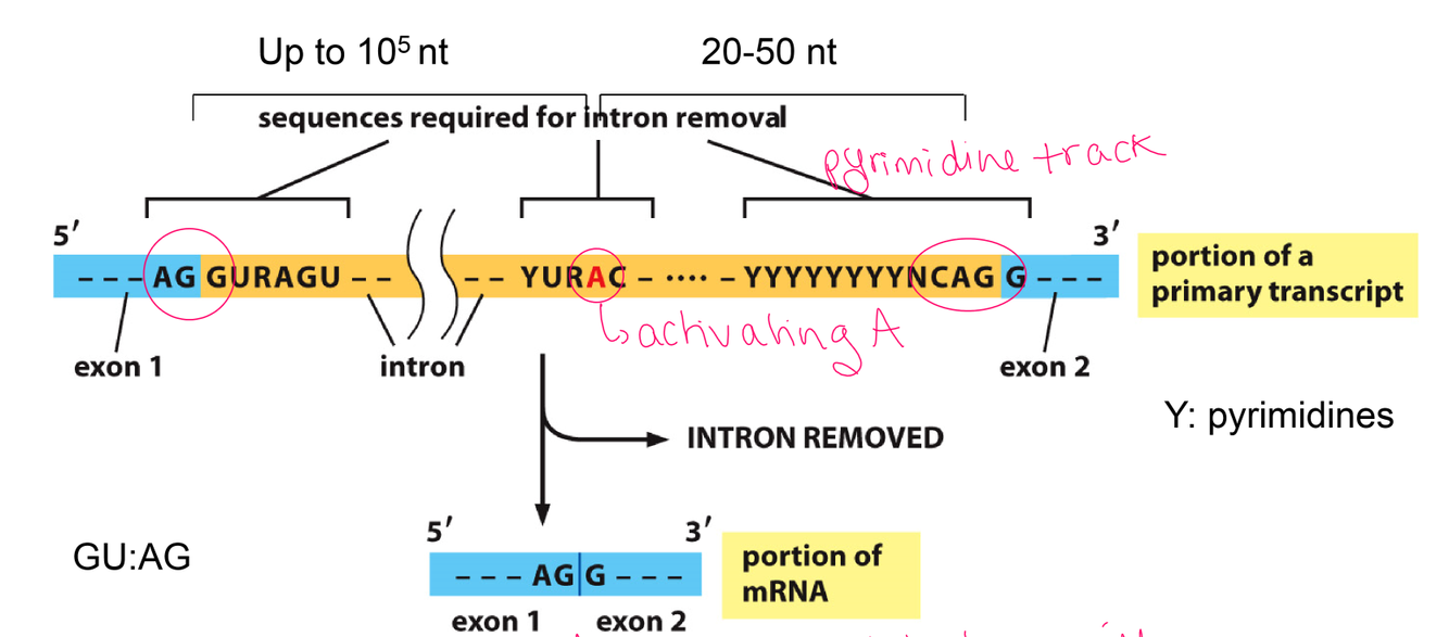 Describe the intron/exon boundaries and how they allow for these regions to be recognized by splicing machinery.