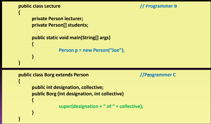 ▪ If Programmer C writes a method for creating Borgs that meets a well defined interface defined by Programmer B…