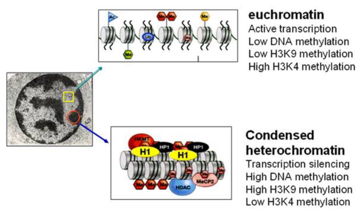 • Chromatin is found in two varieties: euchromatin and heterochromatin