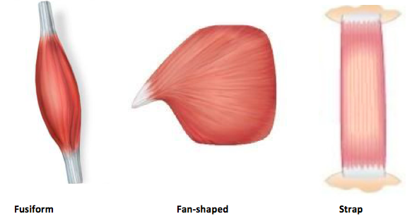 Fan shaped muscles have fibres that converge at one end e.g. pectoralis major