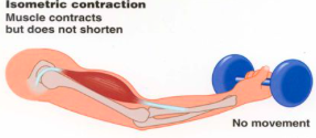 Isometric contractions is where the length of the muscle stays contant but tension is generated e.g. holding a weight in a fixed position, or trying to push a brick wall