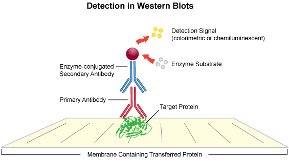 Western blotting involves the detection of proteins by antibodies after protein gel electrophoresis