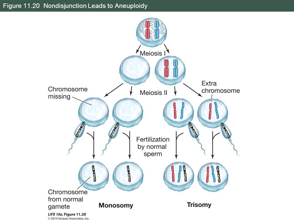 Aneuploidy is the loss/ gain of whole chromosomes and arise due to errors at cell division in meiosis