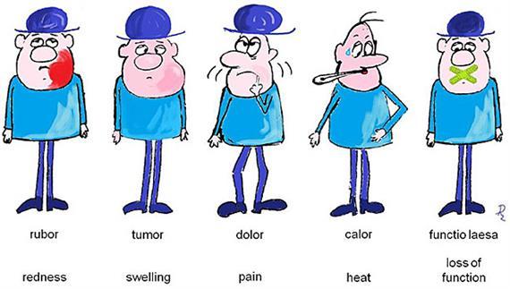 What are 5 cardinal signs of acute inflammation?