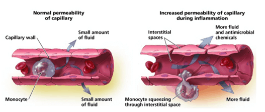 Result = increased fluid and leucocyte delivery to the area of injury
