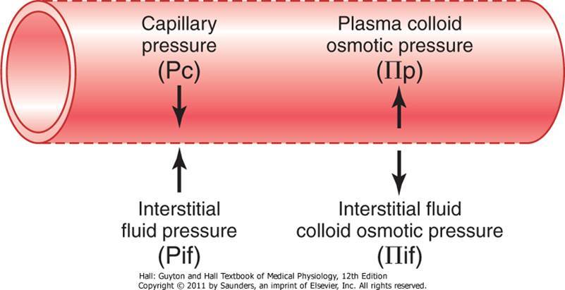 The exchange between the blood and tissue spaces depends on the four forces below.