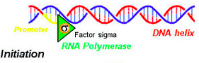 Initiation: RNA polymerase binds to a specific nucleotide sequence (called a promoter) that marks the beginning of a gene.