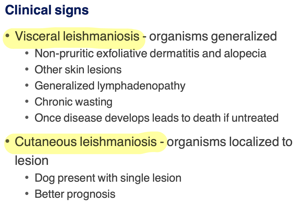 - transmission = bite of infected sand fly