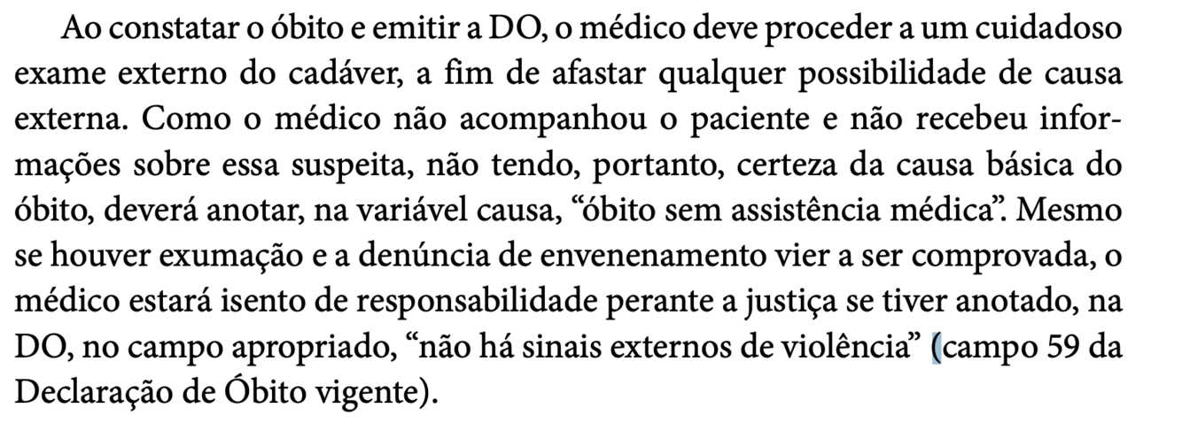 (SVO) na ausência de sinais externos de violência ou ao IML em mortes violentas