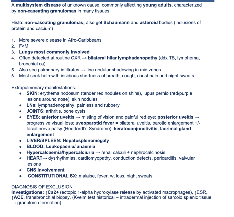 Histopath > Sarcoidosis > Flashcards