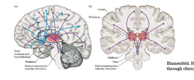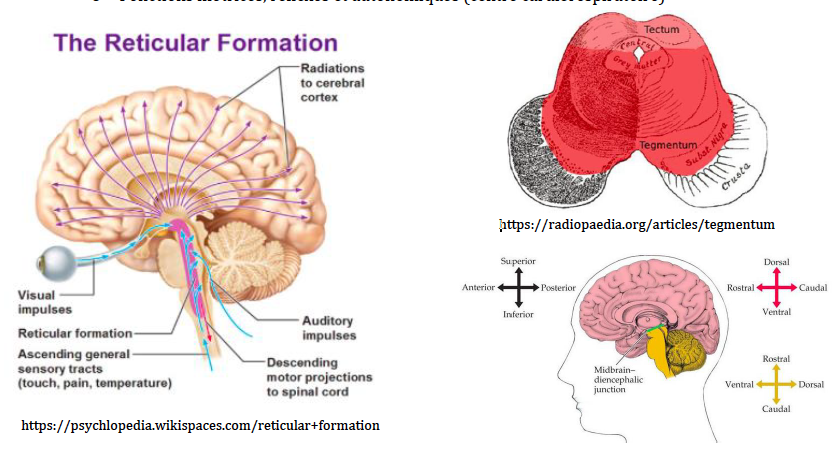 Le mésencéphale, la formation réticulée rostrale et certains noyaux diencéphaliques travaillent ensemble dans le but de maintenir l’état de conscience
