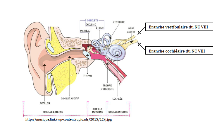 Le nerf vestibulo-cochléaire est composé de 2 branches