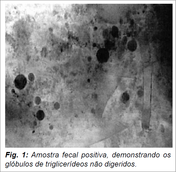 Pela procura de gordura nas fezes: teste quantitativo da gordura fecal (> 7g/dia pela análise das fezes de 72h com dieta rica em gorduras 100 g/dia = disabsorção - é o melhor exame, mas pouco prático), teste qualitativo da gordura fecal (usa corante Sudan III) e teste semiquantitativo (esteatócrito - relação entre gordura e fezes).