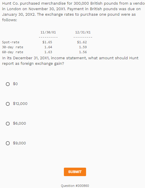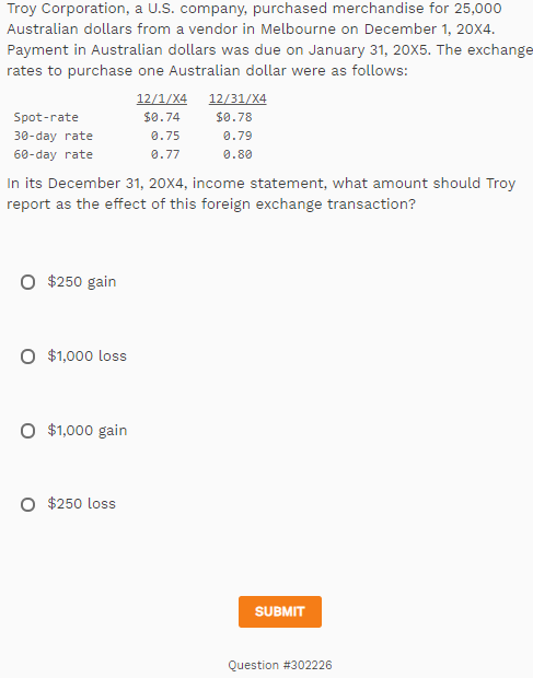 The spot rate was $.70 on December 31, 20X1. What amount should Yumi report as a foreign currency transaction loss in its income statement for the year ended December 31, 20X1?