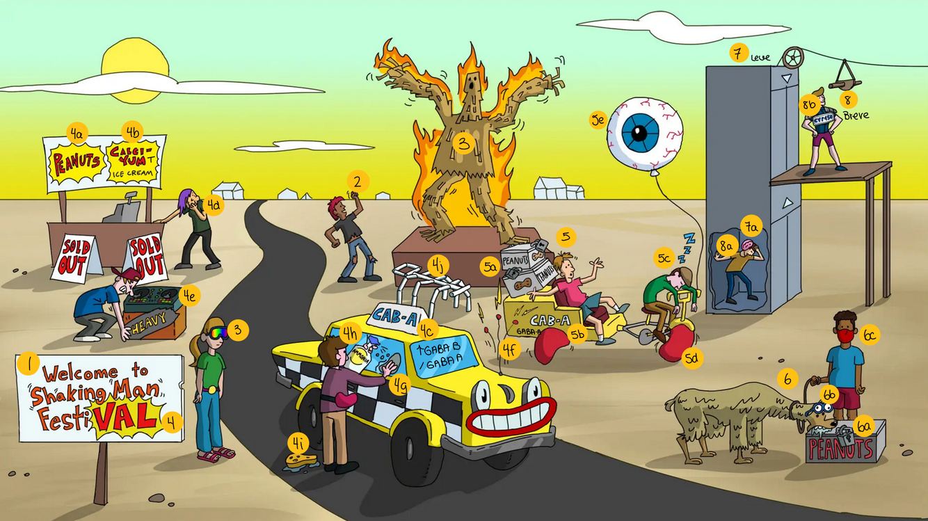 Increases inhibitory effects of GABA through binding of allosteric site of GABA-A receptor [5b]