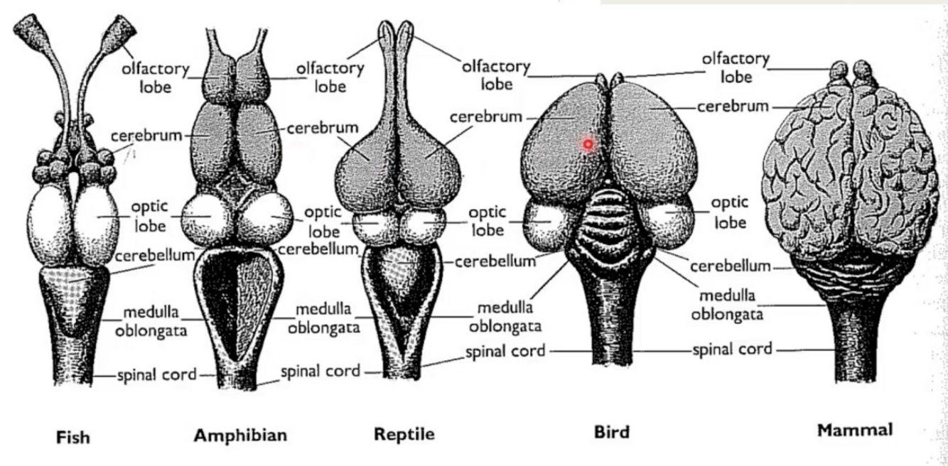 - Forebrain (cerebrum, optic structures, olfactory lobe)