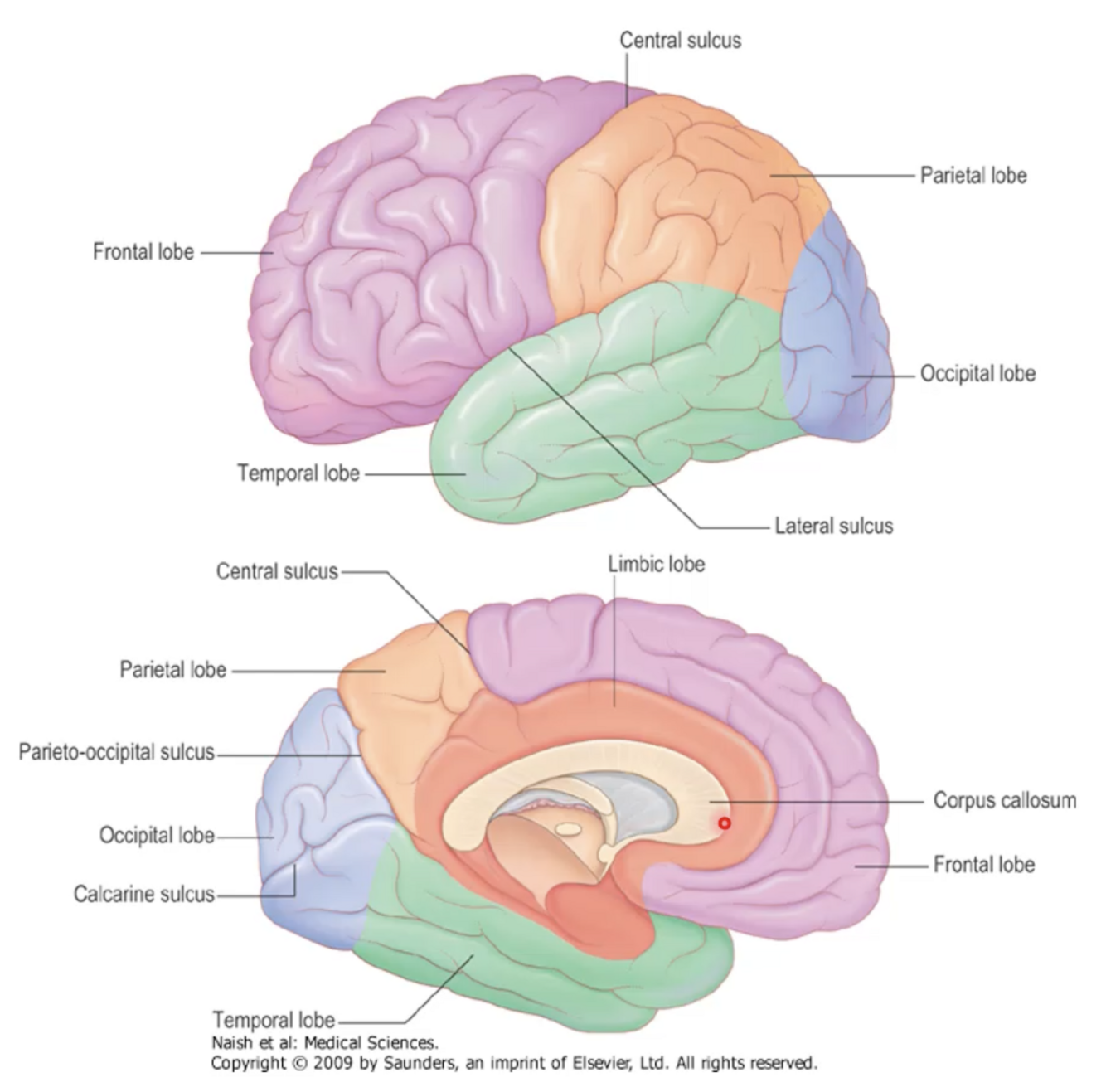 What are the lobes of the human brain?