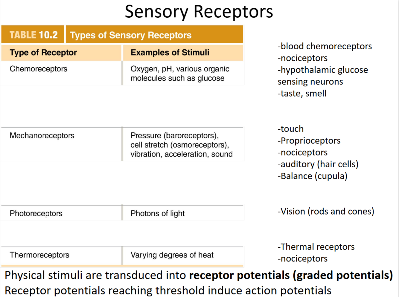 -A stimulus above threshold initiates AP’s in a sensory neuron that project to the CNS