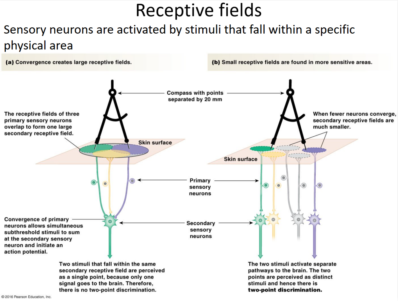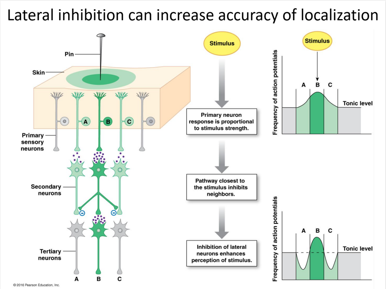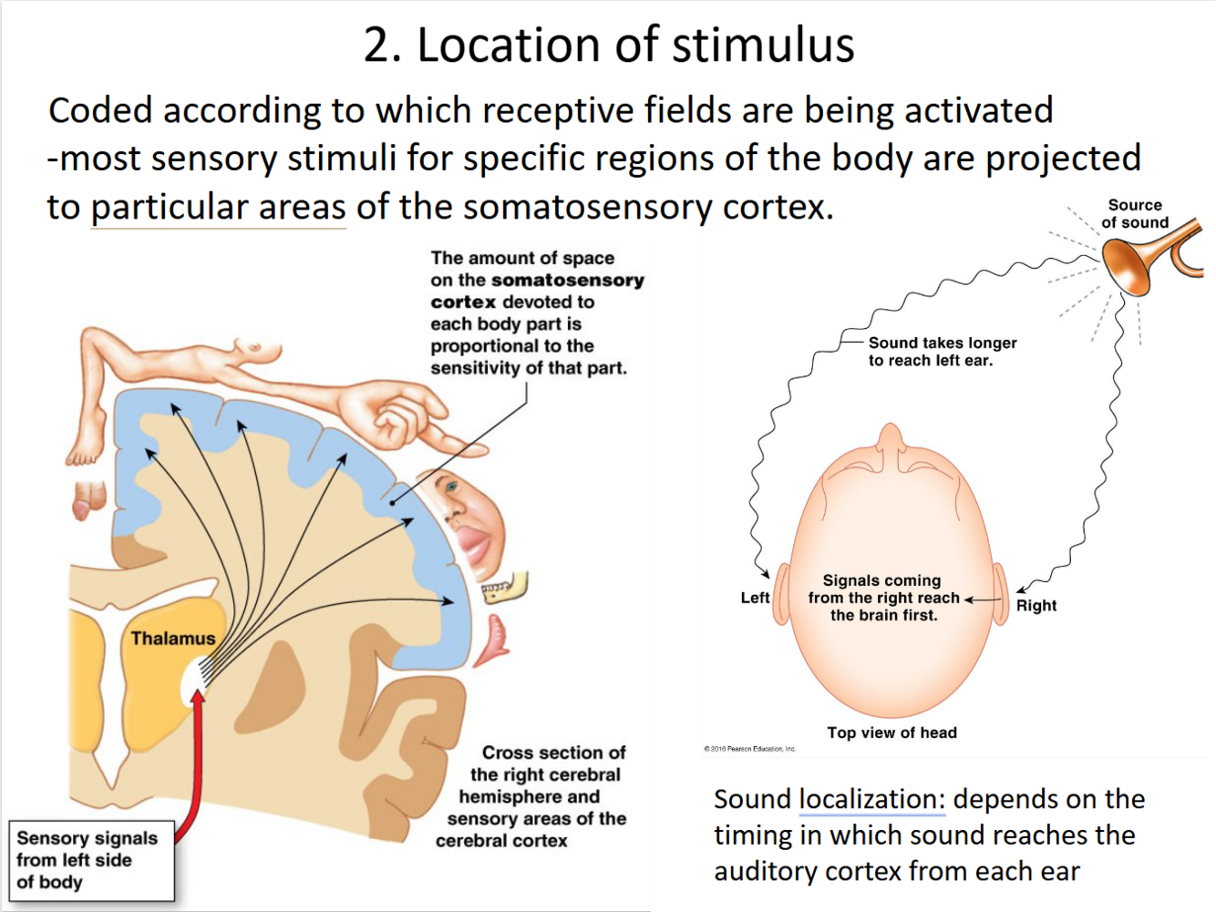 -Stimulus location and modality are coded according to which receptors are activated or (in the case of sound) by the timing of receptor activation