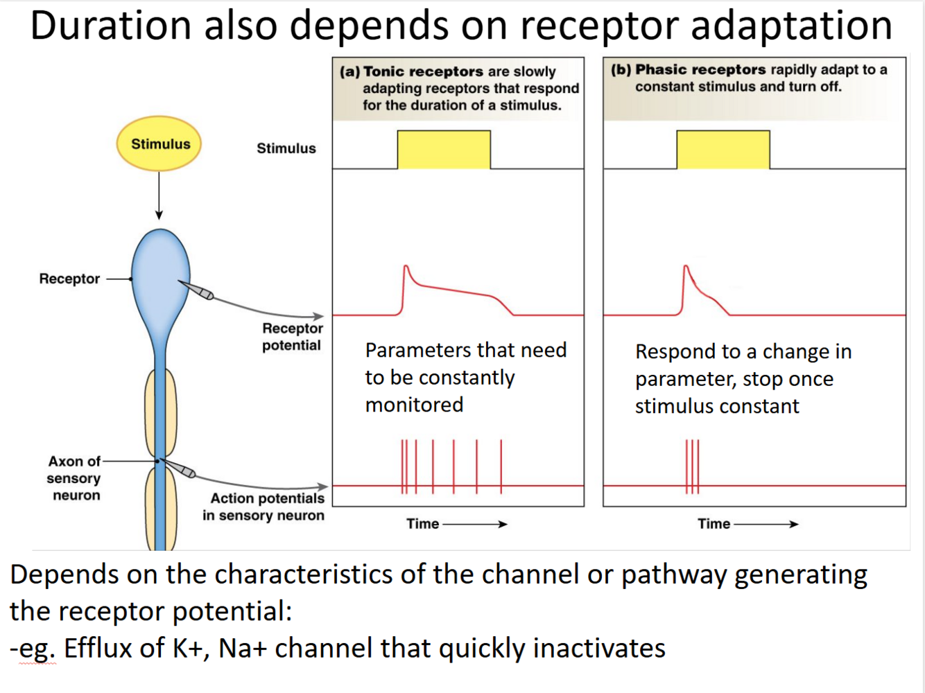 -Stimulus intensity and duration are encoded in the pattern of AP’s reaching the CNS