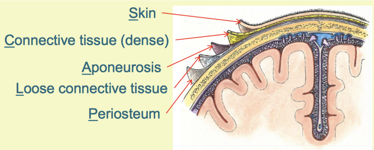 [*] Vessels of the scalp lie in the subcutaneous connective tissue layer.