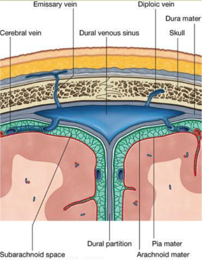 [*] Connection between venous drainage of scalp and dural venous sinuses