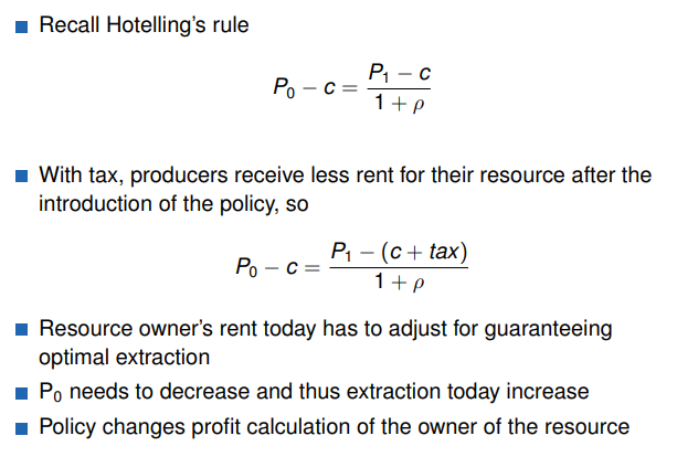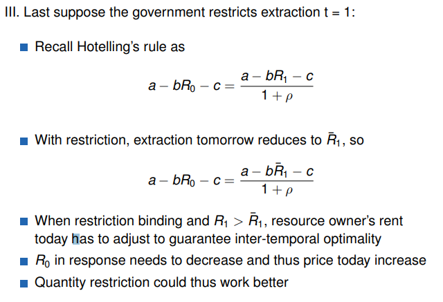 Using the hotelling rule, what happens if the government restricts extraction in t = 1?
