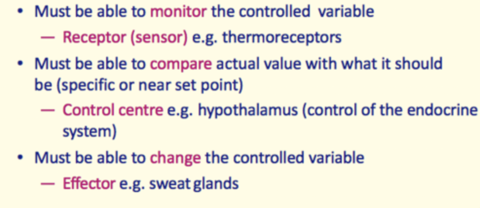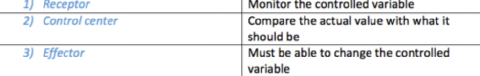 1) Receptor 2) Control centre 3) Effector