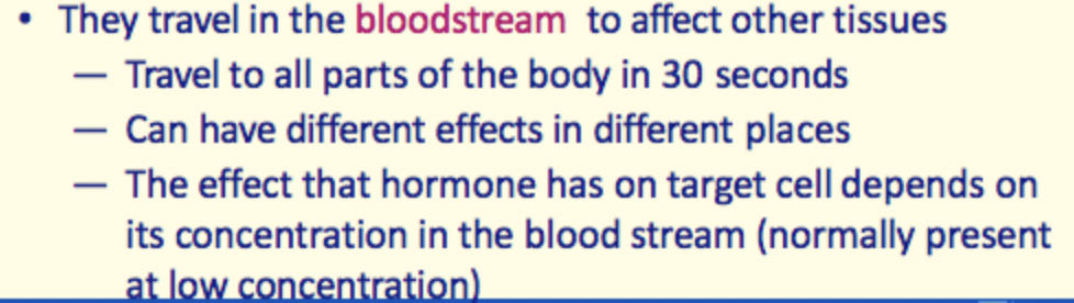 How do hormones travel to affect other tissues?