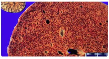 A 67-year-old gentleman presents to A&E disorientated. He is unkempt and smells of alcohol. On examination, he is jaundiced, has an enlarged abdomen and spider naevi on his chest. He demonstrates a liver flap.