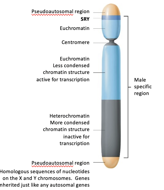 The SRY gene on the p arm of the Y chromosome codes for SRY protein, a transcription factor that upregulates its own gene